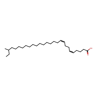 | CCSBASE_E7C1099B64 | FA(28:2) | [M-H]- | 419.382 | 203.36 | CCC(C)CCCCCCCCCCCCCC/C=C\CC/C=C\CCCC(=O)O | Lipids and lipid-like molecules | -1 | 20 | TIMS | single field, calibrated | |