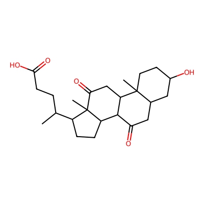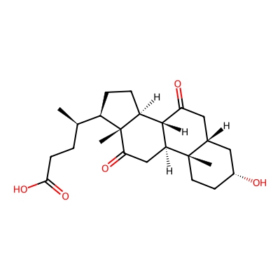 | CCSBASE_FF5950C0D4 | 7,12-dioxolithocholic acid | [M-H2O-H]- | 385.24162 | 194.8 | CC(CCC(=O)O)C1CCC2C3C(=O)CC4CC(O)CCC4(C)C3CC(=O)C12C | None | -1 | 21 | DT | single field, calibrated | |
