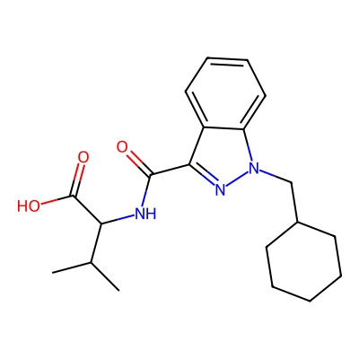 | CCSBASE_D05B9A48CA | AB-CHMINACA Metabolite 2 | [M+H]+ | 358.2125217 | 195.19 | CC(C)C(C(=O)O)NC(=O)C1=NN(C2=CC=CC=C21)CC3CCCCC3 | None | 1 | 23 | TW | calibrated with small molecules, "System Suitability Test" mix | |