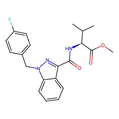 | CCSBASE_520589FF10 | AMB-FUBINACA | [M+H]+ | 384.1717997 | 195.02 | CC(C)[C@@H](C(=O)OC)NC(=O)C1=NN(C2=CC=CC=C21)CC3=CC=C(C=C3)F | Organic acids and derivatives | 1 | 23 | TW | calibrated with small molecules, "System Suitability Test" mix | |