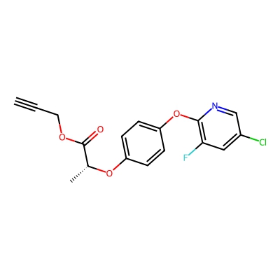 | CCSBASE_5DB9A86D38 | Clodinafop-Propargyl | [M+Na]+ | 372.0409338 | 175.52 | C[C@H](C(=O)OCC#C)OC1=CC=C(C=C1)OC2=C(C=C(C=N2)Cl)F | Benzenoids | 1 | 23 | TW | calibrated with small molecules, "System Suitability Test" mix | |