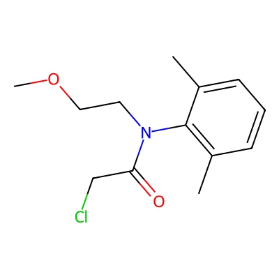 | CCSBASE_3EC29014D6 | Dimetachlor | [M+H]+ | 256.1098865 | 151.68 | CC1=C(C(=CC=C1)C)N(CCOC)C(=O)CCl | Benzenoids | 1 | 23 | TW | calibrated with small molecules, "System Suitability Test" mix | |