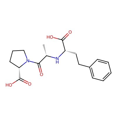 | CCSBASE_22E50B532C | Enalapril | [M+H]+ | 377.207102 | 187.96 | CCOC(=O)[C@H](CCC1=CC=CC=C1)N[C@@H](C)C(=O)N2CCC[C@H]2C(=O)O | Organic acids and derivatives | 1 | 23 | TW | calibrated with small molecules, "System Suitability Test" mix | |