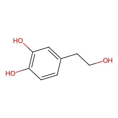 | CCSBASE_45059269DF | Hydroxytyrosol | [M-H]- | 153.0557142 | 130.6 | C1=CC(=C(C=C1CCO)O)O | Benzenoids | -1 | 23 | TW | calibrated with small molecules, "System Suitability Test" mix |