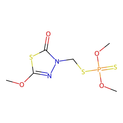 | CCSBASE_44FA3ACC80 | Methidathion | [M+Na]+ | 324.9510774 | 160.41 | COC1=NN(C(=O)S1)CSP(=S)(OC)OC | Organoheterocyclic compounds | 1 | 23 | TW | calibrated with small molecules, "System Suitability Test" mix | |