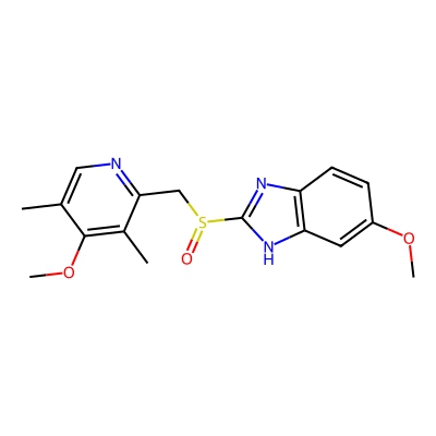 | CCSBASE_889BDAE4C5 | Omeprazole | [M+H]+ | 346.1219927 | 180.58 | CC1=CN=C(C(=C1OC)C)CS(=O)C2=NC3=C(N2)C=C(C=C3)OC | Organoheterocyclic compounds | 1 | 23 | TW | calibrated with small molecules, "System Suitability Test" mix | |