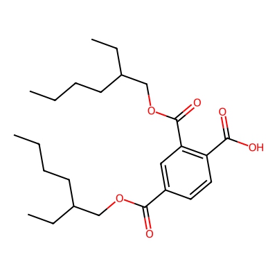 | CCSBASE_9DD3ED55A1 | 2,4-Di-(2-ethylhexyl) trimellitate | [M-H]- | 433.2596 | 222.86 | CCCCC(CC)COC(=O)C1=CC(=C(C=C1)C(=O)O)C(=O)OCC(CC)CCCC | Benzenoids | -1 | 24 | DT | single field, calibrated | |