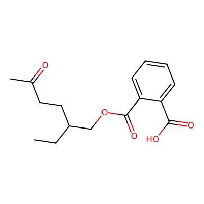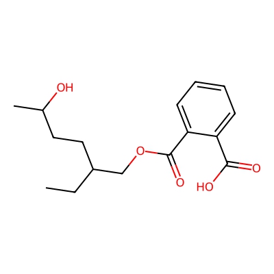 | CCSBASE_73AA3991D8 | Mono(2-ethyl-5-hydroxyhexyl) phthalate | [M-H]- | 293.1394 | 168.99 | CCC(CCC(C)O)COC(=O)C1=CC=CC=C1C(=O)O | Benzenoids | -1 | 24 | DT | single field, calibrated | |