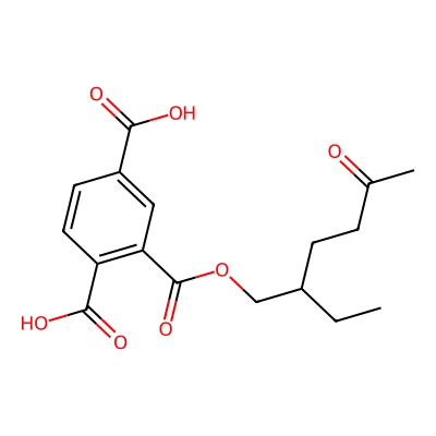 | CCSBASE_BBAD50B35E | Mono(2-ethyl-oxo-hexyl) trimelliate | [M-H]- | 335.1136 | 178.84 | CCC(CCC(=O)C)COC(=O)C1=C(C=CC(=C1)C(=O)O)C(=O)O | Benzenoids | -1 | 24 | DT | single field, calibrated | |