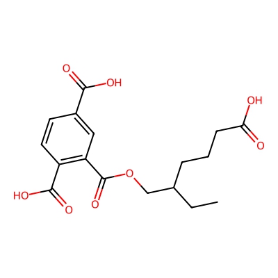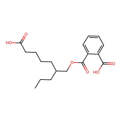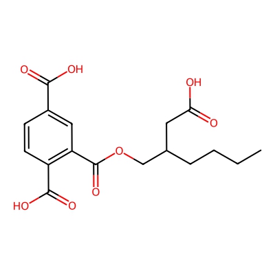 | CCSBASE_B879BF2E05 | Mono(2-propyl-6-carboxyhexyl) phthalate | [M-H]- | 335.15 | 179.64 | CCCC(CCCCC(=O)O)COC(=O)C1=CC=CC=C1C(=O)O | Benzenoids | -1 | 24 | DT | single field, calibrated | |