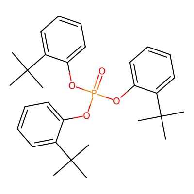 | CCSBASE_309ACE185B | tris(tert-butylphenyl) phosphate | [M+H]+ | 495.2659 | 237.14 | CC(C)(C)C1=CC=CC=C1OP(=O)(OC2=CC=CC=C2C(C)(C)C)OC3=CC=CC=C3C(C)(C)C | Organic acids and derivatives | 1 | 24 | DT | single field, calibrated | |