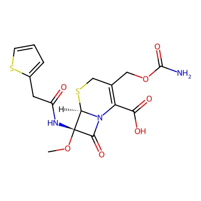 | CCSBASE_5FA5551F9A | Cefoxitin | [M+Na]+ | 450.0406 | 186.9 | CO[C@@]1([C@@H]2N(C1=O)C(=C(CS2)COC(=O)N)C(=O)O)NC(=O)CC3=CC=CS3 | Organoheterocyclic compounds | 1 | 25 | DT | single field, calibrated | |