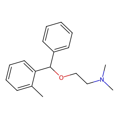 | CCSBASE_BE3B3488F8 | Orphenadrine | [M+H-H2O]+ | 252.1752 | 156.5 | CC1=CC=CC=C1C(C2=CC=CC=C2)OCCN(C)C | Benzenoids | 1 | 25 | DT | single field, calibrated | |