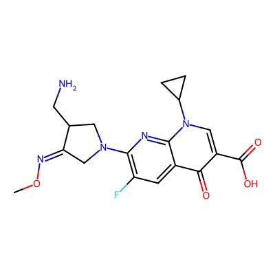 | CCSBASE_A255D9467E | Gemifloxacin | [M+H]+ | 390.1577 | 188.8 | CO/N=C/1\CN(CC1CN)C2=C(C=C3C(=O)C(=CN(C3=N2)C4CC4)C(=O)O)F | Organoheterocyclic compounds | 1 | 25 | DT | single field, calibrated | |