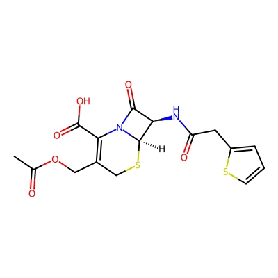 | CCSBASE_FFB0DEB137 | Cephalothin | [M+Na]+ | 419.0348 | 182.9 | CC(=O)OCC1=C(N2[C@@H]([C@@H](C2=O)NC(=O)CC3=CC=CS3)SC1)C(=O)O | Organoheterocyclic compounds | 1 | 25 | DT | single field, calibrated | |