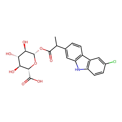| CCSBASE_10E03B8E86 | Carprofen_met002 | [M+Na]+ | 472.0775 | 204.8 | CC(C1=CC2=C(C=C1)C3=C(N2)C=CC(=C3)Cl)C(=O)OC4C(C(C(C(O4)C(=O)O)O)O)O | Organic oxygen compounds | 1 | 25 | DT | single field, calibrated |