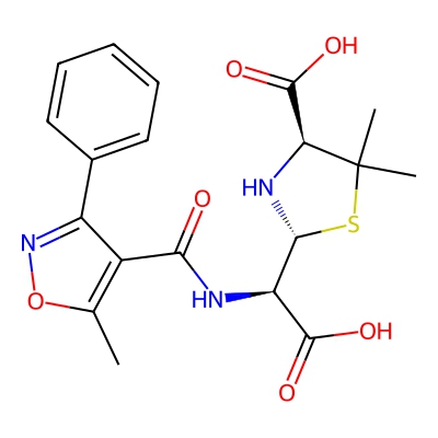 | CCSBASE_F6824F7065 | Oxacillin_met003 | [M+H]+ | 420.1229 | 193.6 | CC1=C(C(=NO1)C2=CC=CC=C2)C(=O)N[C@@H]([C@@H]3N[C@H](C(S3)(C)C)C(=O)O)C(=O)O | Organic acids and derivatives | 1 | 25 | DT | single field, calibrated | |