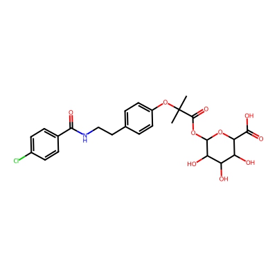 | CCSBASE_C1A4BB0992 | Bezafibrate_met009 | [M+Na]+ | 560.13 | 222.1 | CC(C)(C(=O)OC1C(C(C(C(O1)C(=O)O)O)O)O)OC2=CC=C(C=C2)CCNC(=O)C3=CC=C(C=C3)Cl | Organic oxygen compounds | 1 | 25 | DT | single field, calibrated | |