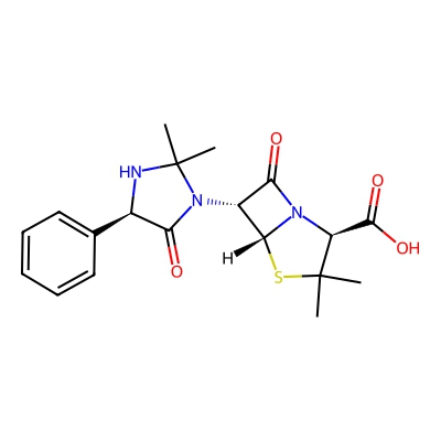 | CCSBASE_5A988EF5C3 | Hetacillin | [M+H]+ | 390.1487 | 189.4 | CC1([C@@H](N2[C@H](S1)[C@@H](C2=O)N3C(=O)[C@H](NC3(C)C)C4=CC=CC=C4)C(=O)O)C | Organoheterocyclic compounds | 1 | 25 | DT | single field, calibrated | |