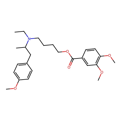 | CCSBASE_9F7E5ECC48 | Mebeverine | [M+H]+ | 430.2593 | 204.5 | CCN(CCCCOC(=O)C1=CC(=C(C=C1)OC)OC)C(C)CC2=CC=C(C=C2)OC | Benzenoids | 1 | 25 | DT | single field, calibrated | |