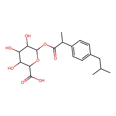 | CCSBASE_FEA5589086 | Ibuprofen_met011 | [M+Na]+ | 405.1526 | 189.7 | CC(C)CC1=CC=C(C=C1)C(C)C(=O)OC2C(C(C(C(O2)C(=O)O)O)O)O | Organic oxygen compounds | 1 | 25 | DT | single field, calibrated | |