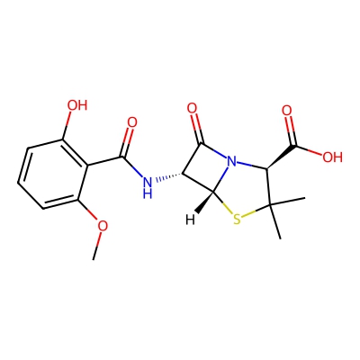 | CCSBASE_3A7D3DD81C | Methicillin_met011 | [M+K]+ | 405.0523 | 173.6 | CC1([C@@H](N2[C@H](S1)[C@@H](C2=O)NC(=O)C3=C(C=CC=C3OC)O)C(=O)O)C | Organic acids and derivatives | 1 | 25 | DT | single field, calibrated | |