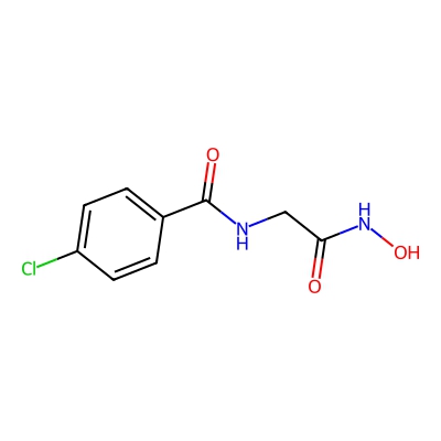 | CCSBASE_DA9455263C | Benurestat | [M+Na]+ | 251.02 | 156.9 | C1=CC(=CC=C1C(=O)NCC(=O)NO)Cl | Benzenoids | 1 | 25 | DT | single field, calibrated | |