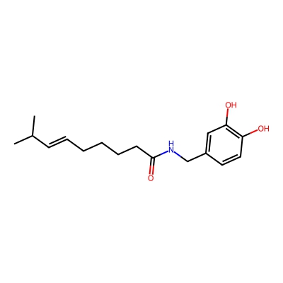 | CCSBASE_9B4406B271 | Capsaicin_met007 | [M+H]+ | 292.1912 | 172.8 | CC(C)/C=C/CCCCC(=O)NCC1=CC(=C(C=C1)O)O | Benzenoids | 1 | 25 | DT | single field, calibrated |