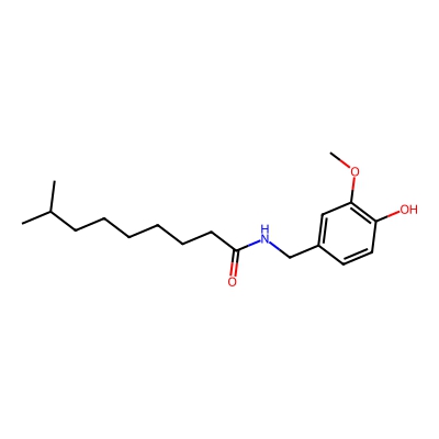 | CCSBASE_C86641823A | Dihydrocapsaicin | [M+H]+ | 308.1862 | 164.8 | CC(C)CCCCCCC(=O)NCC1=CC(=C(C=C1)O)OC | Benzenoids | 1 | 25 | DT | single field, calibrated | |
