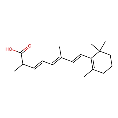 | CCSBASE_7B05053F12 | Isotretinon_met001 | [M+Na]+ | 311.1987 | 168.6 | CC1=C(C(CCC1)(C)C)/C=C/C(=C/C=C/C(C)C(=O)O)/C | Lipids and lipid-like molecules | 1 | 25 | DT | single field, calibrated | |
