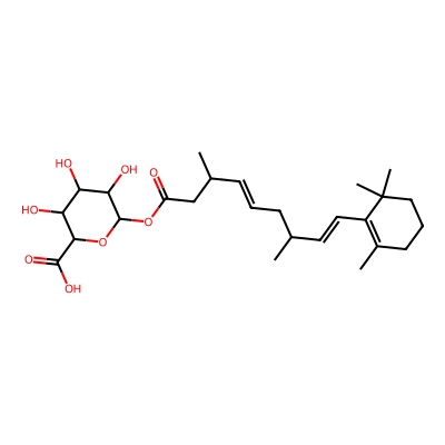 | CCSBASE_D4763BABB8 | Isotretinon_met002 | [M+H]+ | 481.2801 | 213.4 | CC1=C(C(CCC1)(C)C)/C=C/C(C)C/C=C/C(C)CC(=O)OC2C(C(C(C(O2)C(=O)O)O)O)O | Lipids and lipid-like molecules | 1 | 25 | DT | single field, calibrated | |