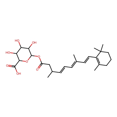 | CCSBASE_52EFFA4E0E | Isotretinon_met004 | [M+H]+ | 479.2645 | 211.5 | CC1=C(C(CCC1)(C)C)/C=C/C(=C/C=C/C(C)CC(=O)OC2C(C(C(C(O2)C(=O)O)O)O)O)/C | Lipids and lipid-like molecules | 1 | 25 | DT | single field, calibrated | |