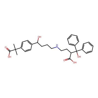 | CCSBASE_49F197FBE9 | Fexofenadine_met004 | [M+H]+ | 520.2699 | 217.8 | CC(C)(C1=CC=C(C=C1)C(CCCNCCC(C(=O)O)C(C2=CC=CC=C2)(C3=CC=CC=C3)O)O)C(=O)O | Benzenoids | 1 | 25 | DT | single field, calibrated | |