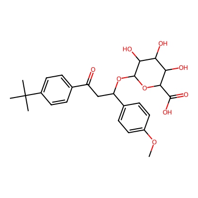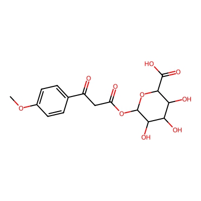 | CCSBASE_74D714A0E6 | Avobenzone_met037 | [M+H]+ | 371.0978 | 176.1 | COC1=CC=C(C=C1)C(=O)CC(=O)OC2C(C(C(C(O2)C(=O)O)O)O)O | Organic oxygen compounds | 1 | 25 | DT | single field, calibrated | |