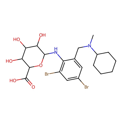 | CCSBASE_F1ABD38586 | Bromhexine_met015 | [M+H]+ | 551.0392 | 203.9 | CN(CC1=C(C(=CC(=C1)Br)Br)NC2C(C(C(C(O2)C(=O)O)O)O)O)C3CCCCC3 | None | 1 | 25 | DT | single field, calibrated | |