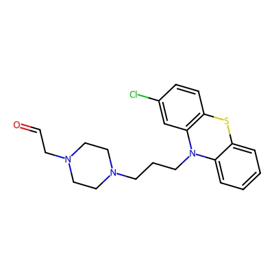 | CCSBASE_BCE607B629 | Perphenazine_met005 | [M+H]+ | 402.1407 | 188.1 | C1CN(CCN1CCCN2C3=CC=CC=C3SC4=C2C=C(C=C4)Cl)CC=O | Organoheterocyclic compounds | 1 | 25 | DT | single field, calibrated | |