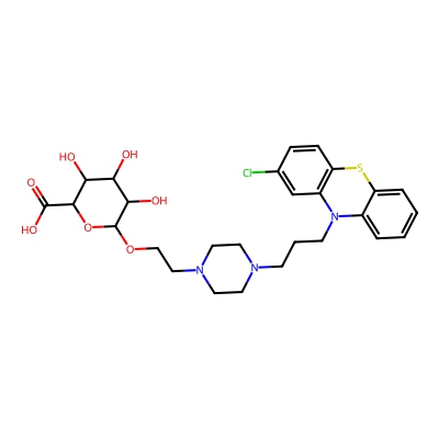 | CCSBASE_C02E73B3DF | Perphenazine_met021 | [M+H]+ | 580.1884 | 224.7 | C1CN(CCN1CCCN2C3=CC=CC=C3SC4=C2C=C(C=C4)Cl)CCOC5C(C(C(C(O5)C(=O)O)O)O)O | Organoheterocyclic compounds | 1 | 25 | DT | single field, calibrated | |