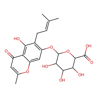 | CCSBASE_99E61F3137 | Peucenin_met007 | [M+Na]+ | 459.1267 | 199.6 | CC1=CC(=O)C2=C(C(=C(C=C2O1)OC3C(C(C(C(O3)C(=O)O)O)O)O)CC=C(C)C)O | None | 1 | 25 | DT | single field, calibrated | |