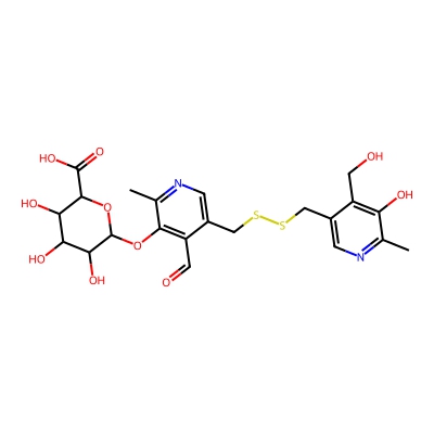 | CCSBASE_B385A041B5 | Pyritinol_met008 | [M+Na]+ | 581.0876 | 205.7 | CC1=NC=C(C(=C1O)CO)CSSCC2=CN=C(C(=C2C(=O)O)OC3C(C(C(C(O3)C(=O)O)O)O)O)C | None | 1 | 25 | DT | single field, calibrated |
