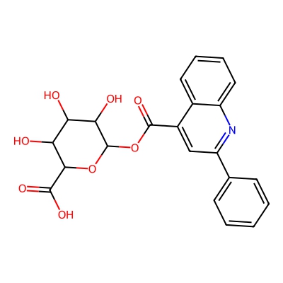 | CCSBASE_61D84EE24B | Cinchophen_met005 | [M+H]+ | 426.1189 | 200.1 | C1=CC=C(C=C1)C2=NC3=CC=CC=C3C(=C2)C(=O)OC4C(C(C(C(O4)C(=O)O)O)O)O | Organoheterocyclic compounds | 1 | 25 | DT | single field, calibrated | |