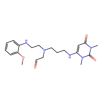| CCSBASE_A6D2694358 | Urapidil_met005 | [M+H]+ | 404.2298 | 196.2 | CN1C(=CC(=O)N(C1=O)C)NCCCN(CCNC2=CC=CC=C2OC)CC=O | None | 1 | 25 | DT | single field, calibrated | |