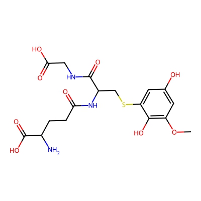 | CCSBASE_F22BF688D0 | 2-benzoyl-5-methoxybenzoquinone_met020 | [M+H]+ | 446.1233 | 197.6 | COC1=C(C(=CC(=C1)O)SCC(C(=O)NCC(=O)O)NC(=O)CCC(C(=O)O)N)O | Organic acids and derivatives | 1 | 25 | DT | single field, calibrated | |