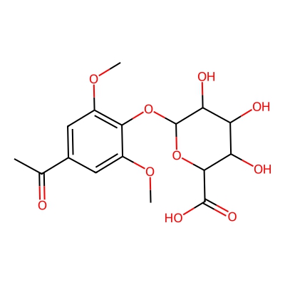 | CCSBASE_ACEFECD3BE | Acetosyringone_met017 | [M+K]+ | 411.0693 | 187.2 | CC(=O)C1=CC(=C(C(=C1)OC)OC2C(C(C(C(O2)C(=O)O)O)O)O)OC | Organic oxygen compounds | 1 | 25 | DT | single field, calibrated | |