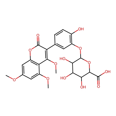 | CCSBASE_D6B858F25D | Derrusnin_met010 | [M+Na]+ | 543.1115 | 221.1 | COC1=CC2=C(C(=C1)OC)C(=C(C(=O)O2)C3=CC(=C(C=C3)O)OC4C(C(C(C(O4)C(=O)O)O)O)O)OC | Phenylpropanoids and polyketides | 1 | 25 | DT | single field, calibrated | |
