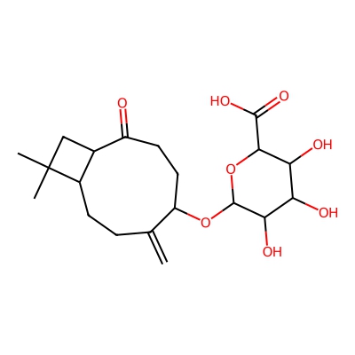 | CCSBASE_137AF2C86E | 3-nor-3-oxopanasinsan-6-ol_met003 | [M+Na]+ | 421.1839 | 189.5 | CC1(CC23C1CCC2(C(CCC3=O)OC4C(C(C(C(O4)C(=O)O)O)O)O)C)C | None | 1 | 25 | DT | single field, calibrated | |