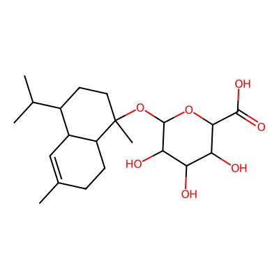 | CCSBASE_A78A8DAD7B | Cadin-4-en-10-ol_met002 | [M+Na]+ | 421.2203 | 191.6 | CC1=CC2C(CCC(C2CC1)(C)OC3C(C(C(C(O3)C(=O)O)O)O)O)C(C)C | Lipids and lipid-like molecules | 1 | 25 | DT | single field, calibrated | |