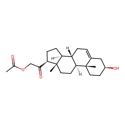 | CCSBASE_148F80C803 | 21-acetoxypregnenolone | [M+Na]+ | 397.2355 | 185.1 | CC(=O)OCC(=O)[C@H]1CC[C@@H]2[C@@]1(CC[C@H]3[C@H]2CC=C4[C@@]3(CC[C@@H](C4)O)C)C | Lipids and lipid-like molecules | 1 | 25 | DT | single field, calibrated | |