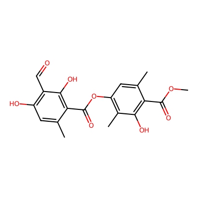 | CCSBASE_870B68A28D | Atranorin | [M+Na]+ | 397.09 | 181.3 | CC1=CC(=C(C(=C1C(=O)OC2=C(C(=C(C(=C2)C)C(=O)OC)O)C)O)C=O)O | Phenylpropanoids and polyketides | 1 | 25 | DT | single field, calibrated |