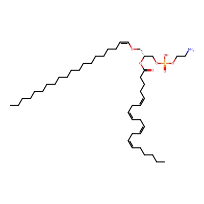 | CCSBASE_1F3FFD0204 | PE(p40:4) | [M+Na]+ | 802.572 | 290.1 | CCCCCCCCCCCCCCCCCC/C=C\OC[C@H](COP(=O)(O)OCCN)OC(=O)CCC/C=C\C/C=C\C/C=C\C/C=C\CCCCC | Lipids and lipid-like molecules | 1 | 5 | TW | calibrated with phosphatidylcholines (ESI+) and phosphatidylethanolamines (ESI-) | |