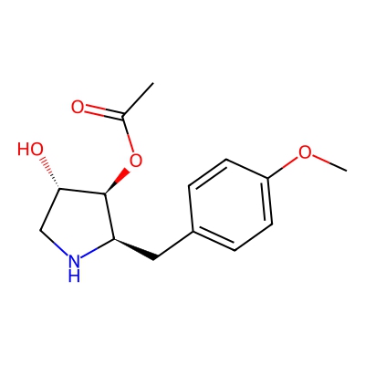 | CCSBASE_8C9E2EF351 | Anisomycin | [M+K]+ | 304.0951 | 165.8 | CC(=O)O[C@@H]1[C@H](CN[C@@H]1CC2=CC=C(C=C2)OC)O | Benzenoids | 1 | 25 | DT | single field, calibrated | |